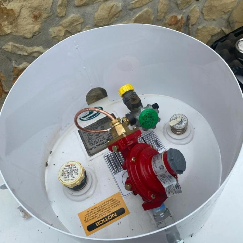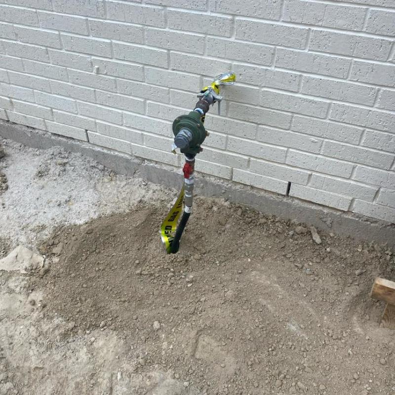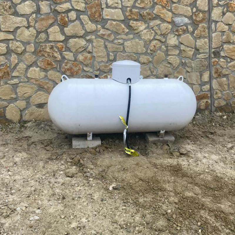 Zak MonroeHeine Propane installed a Triarc 250-gallon aboveground propane tank for a custom home build in Benbrook, Texas. The project included 32 feet of trenching and 38 feet of poly gas line, along with installation of both a compact first-stage and second-stage Marshall Excelsior regulator.